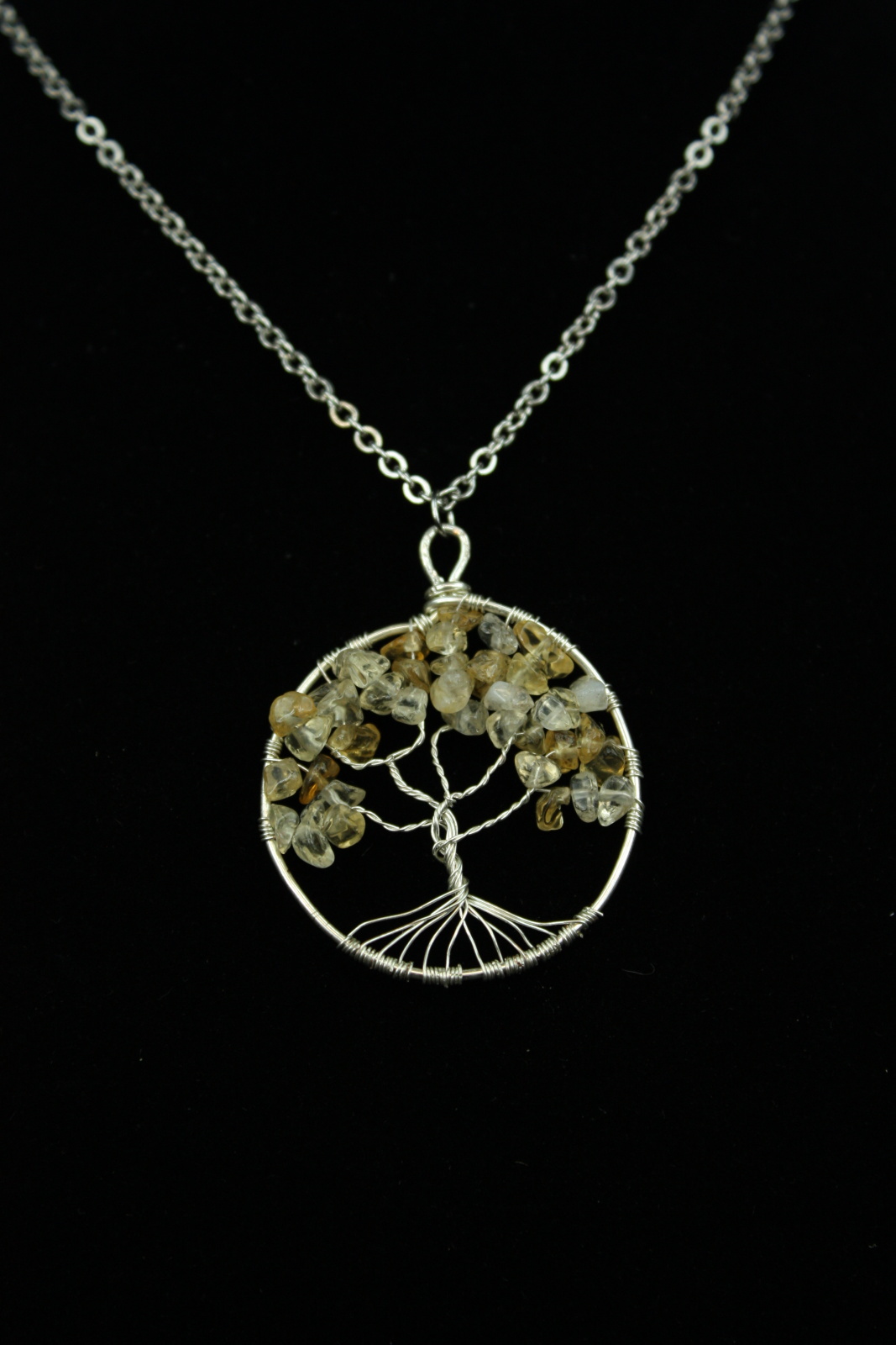 Ručně vyráběný náhrdelník Strom života s minerály.